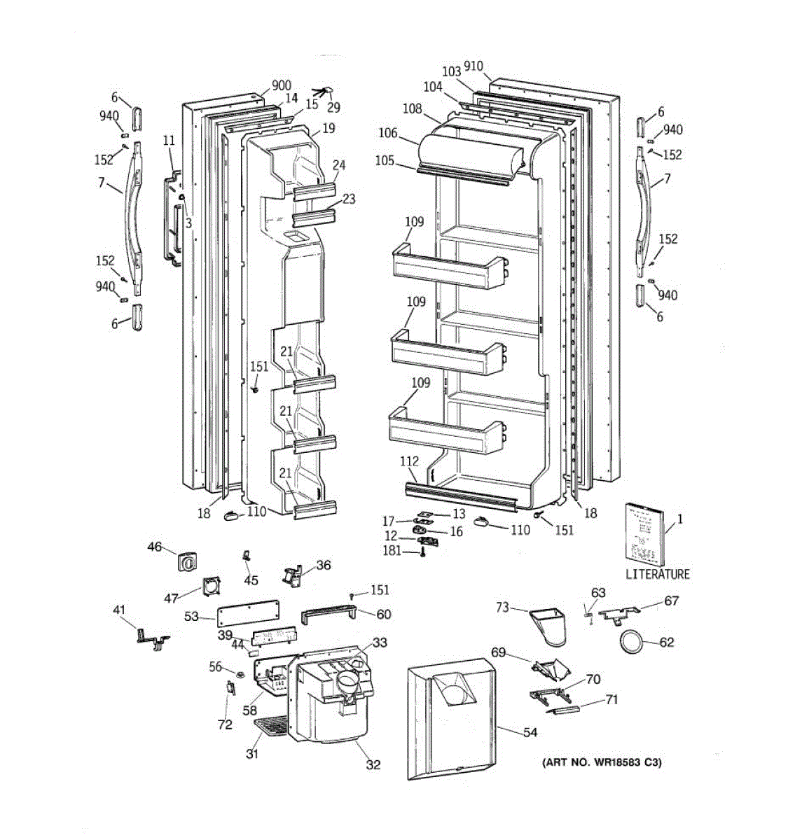 Ice dispenser door assembly seals the ice chute opening on your refrigerator. Replace if cracked, warped, or the rubber gasket is damaged and leaking air.