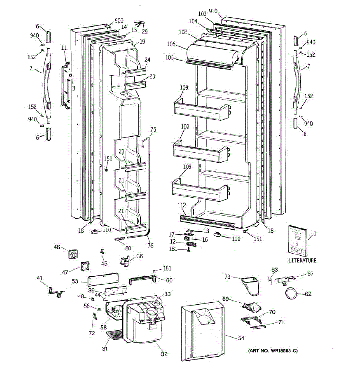 Ice dispenser door assembly seals the ice chute opening on your refrigerator. Replace if cracked, warped, or the rubber gasket is damaged and leaking air.