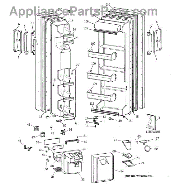 The Ice Door Assembly is an OEM part for GE refrigerators. It is integral to the ice dispenser system, controlling access to the ice chute. This component ensures the efficient delivery of ice cubes or crushed ice when activated and seals off the chute when not in use to maintain the freezer's temperature and prevent frost buildup.