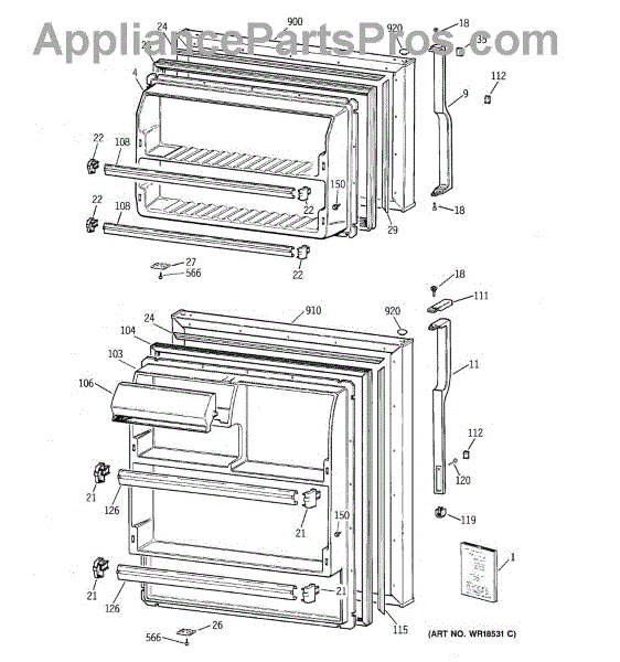 Parts for Ge CTX14CIBBRWW: 01 - Doors Parts