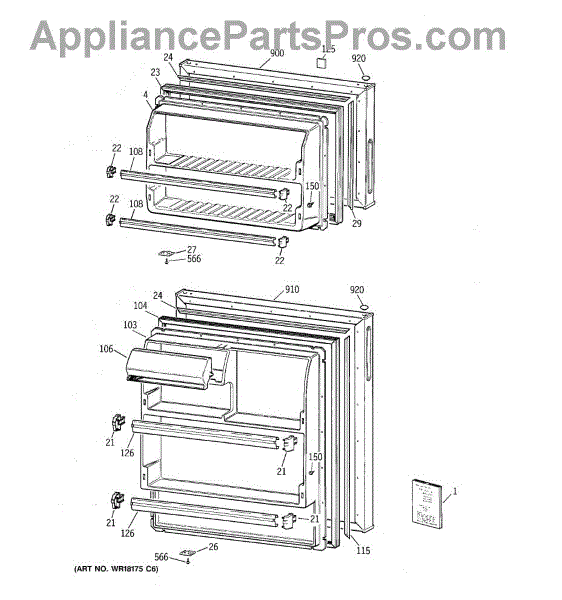 Parts for Ge CTX14CYBJLWW: 01 - Doors Parts