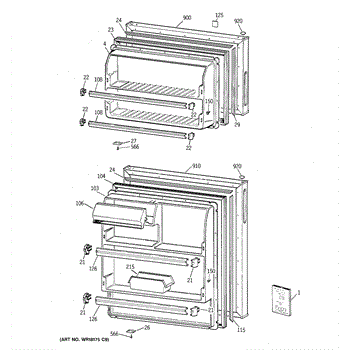 Parts for Ge CTX16BYBHRWW: 01 - Doors Parts