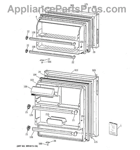 Parts for Ge CTX16BYBNLWW: 01 - Doors Parts