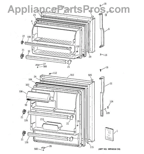 Parts for Ge CTZ16EACDRWW: 01 - Doors Parts