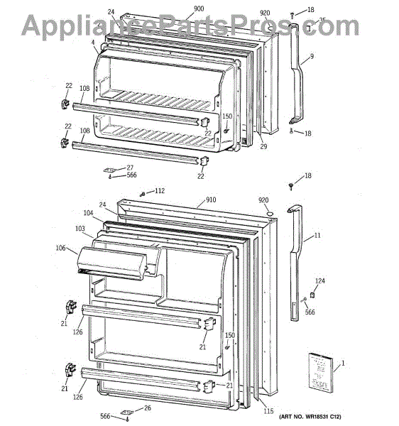 Parts for Ge HTS16BBMBLWW: 01 - Doors Parts