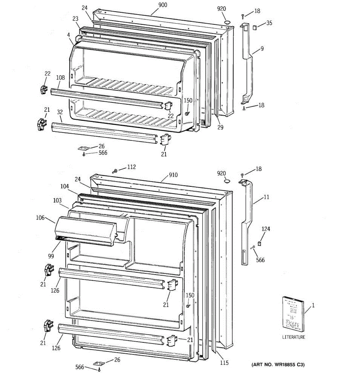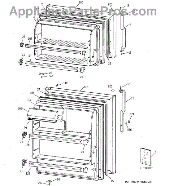 Parts for Ge HTT18EBRFRCC: 01 - Doors Parts