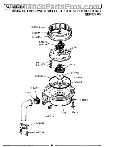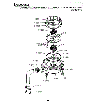 Parts for Maytag FB10: 01 - Drain Chamber / Impeller Plate & Shredder Parts