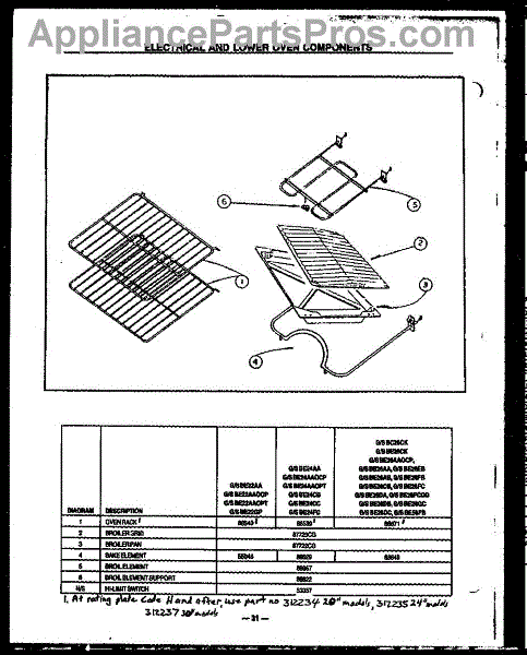 Parts for Amana GBE24AA: 01 - Electrical And Lower Oven Components Parts