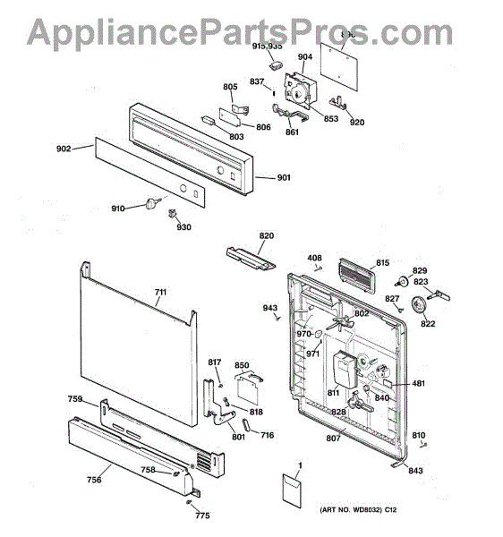 The Soap Dispenser Lever is an OEM part for GE dishwashers. It operates the soap dispenser door, releasing detergent into the dishwasher at the appropriate time during the wash cycle. This lever ensures that detergent is dispensed efficiently for optimal cleaning performance.