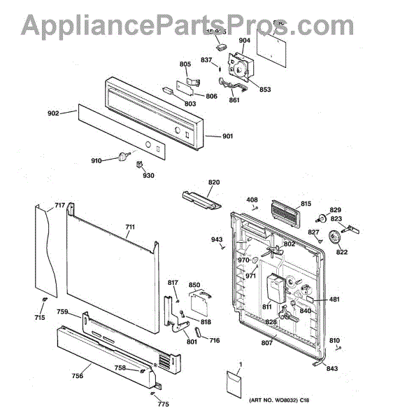 The Soap Dispenser Lever is an OEM part for GE dishwashers. It operates the soap dispenser door, releasing detergent into the dishwasher at the appropriate time during the wash cycle. This lever ensures that detergent is dispensed efficiently for optimal cleaning performance.