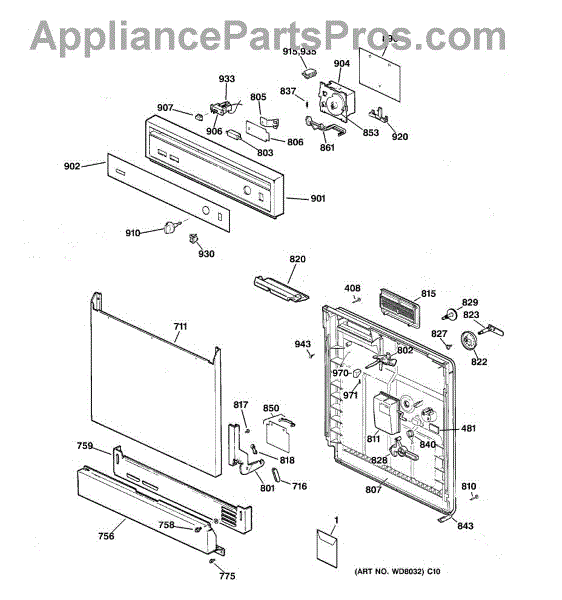 The Soap Dispenser Lever is an OEM part for GE dishwashers. It operates the soap dispenser door, releasing detergent into the dishwasher at the appropriate time during the wash cycle. This lever ensures that detergent is dispensed efficiently for optimal cleaning performance.