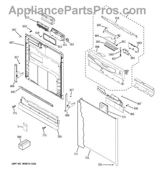 The GE latch handle is an OEM replacement part responsible for allowing the opening and closing of the dishwasher door. Located on the inner door panel, this part ensures that the dishwasher door latches securely when the machine is in operation, preventing any leaks or disruptions in the cleaning process. Additionally, it provides a convenient means for users to open and close the dishwasher, allowing easy access to load and unload dishes. This GE part can also be used on Hotpoint, RCA, and Kenmore/Sears appliances. This part fixes the following symptoms