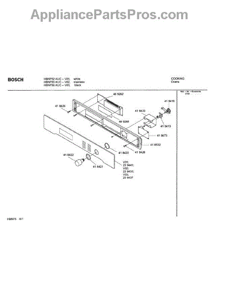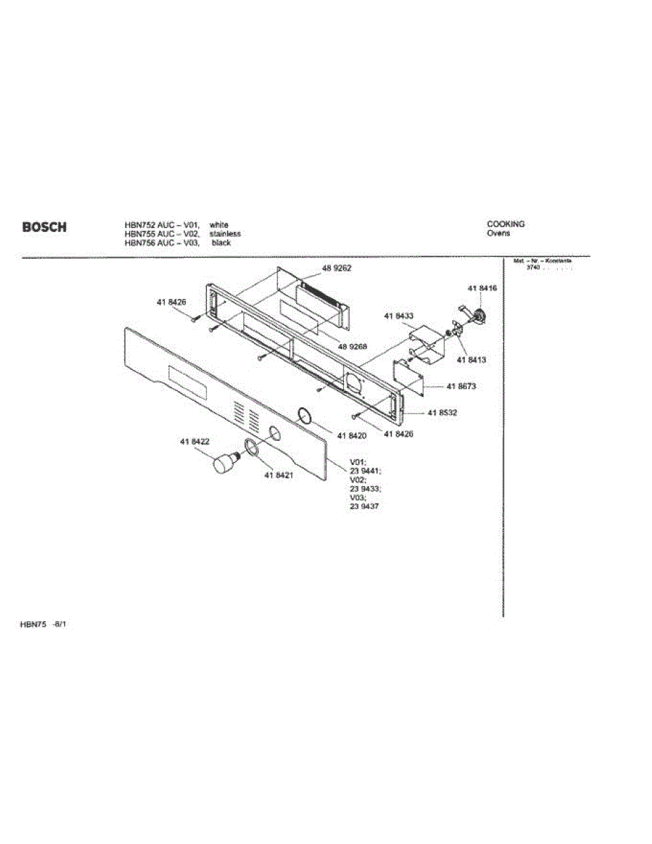 Parts for Bosch HBN755 AUC (FD 8207-): 01 - Fascia Panel Parts