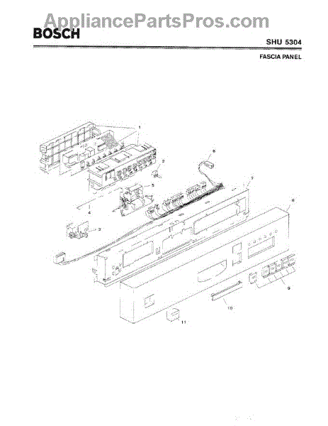 Made by Bosch. Common program control module for Bosch dishwashers SHU53/68. NOTE The manufacturer has redesigned the cover and indicator lights. Lights may be covered by the plastic case. You may have to remove the square covers over the indicator lights if needed. The same case is used for 6 and 8 indicator light models. They also no longer use the red bulb indicator lights, small surface mounted lights are used instead. If you require the Jumper Wire that goes with certain models, the part number is 00167782.