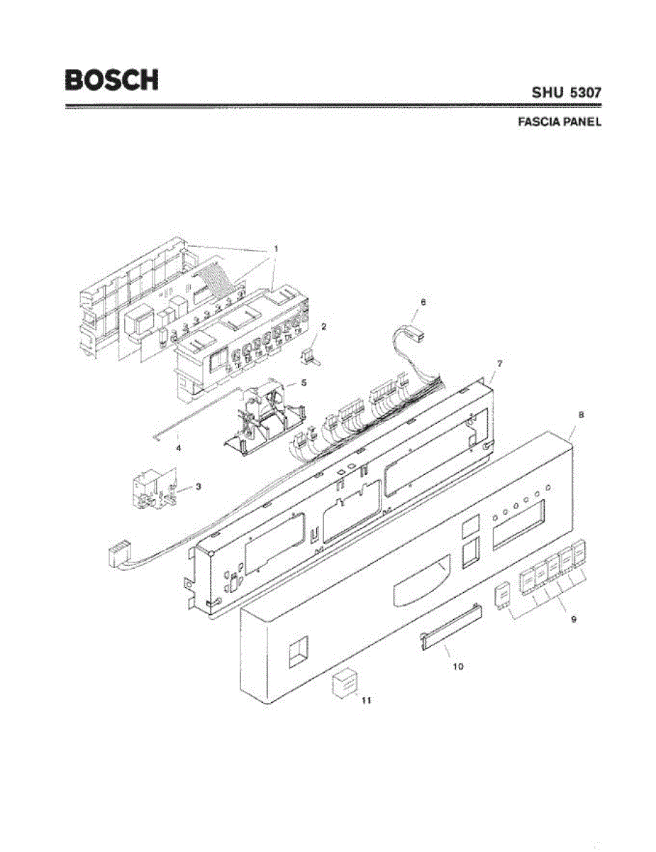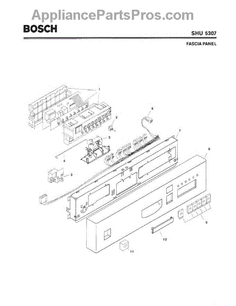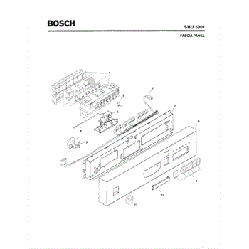 Made by Bosch. Common program control module for Bosch dishwashers SHU53/68. NOTE The manufacturer has redesigned the cover and indicator lights. Lights may be covered by the plastic case. You may have to remove the square covers over the indicator lights if needed. The same case is used for 6 and 8 indicator light models. They also no longer use the red bulb indicator lights, small surface mounted lights are used instead. If you require the Jumper Wire that goes with certain models, the part number is 00167782.