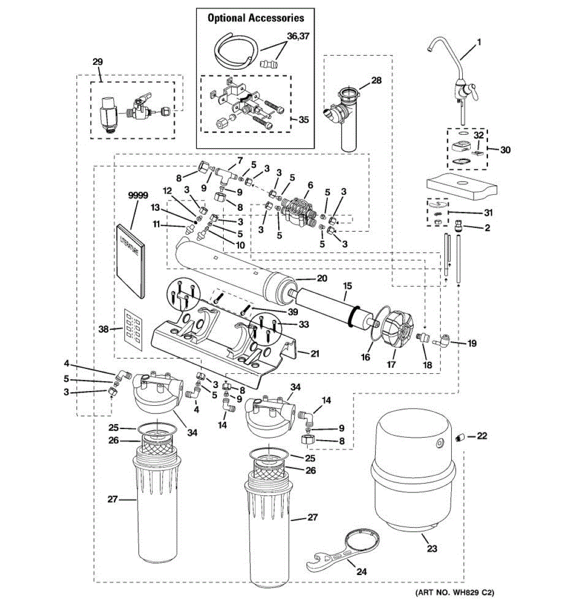 Pre & post reverse osmosis filters.