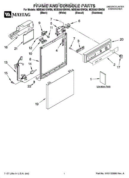 Parts for Maytag MDB3601BWB0: 01 - Frame And Console Parts