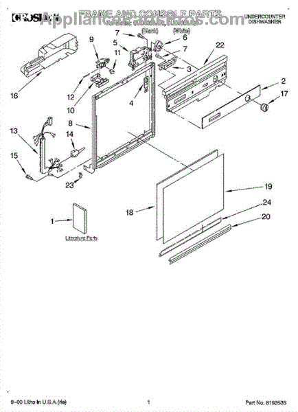 Parts for Whirlpool CUD4000JB0: 01 - Frame And Console, Literature Parts