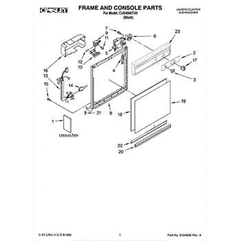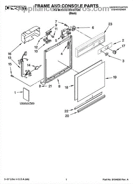 Dishwasher door panel insert. Reversible: white color on one side, black on the other.