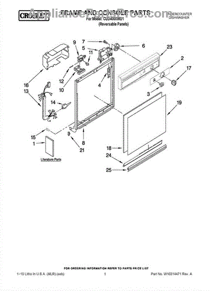 Dishwasher door panel insert. Reversible: white color on one side, black on the other.