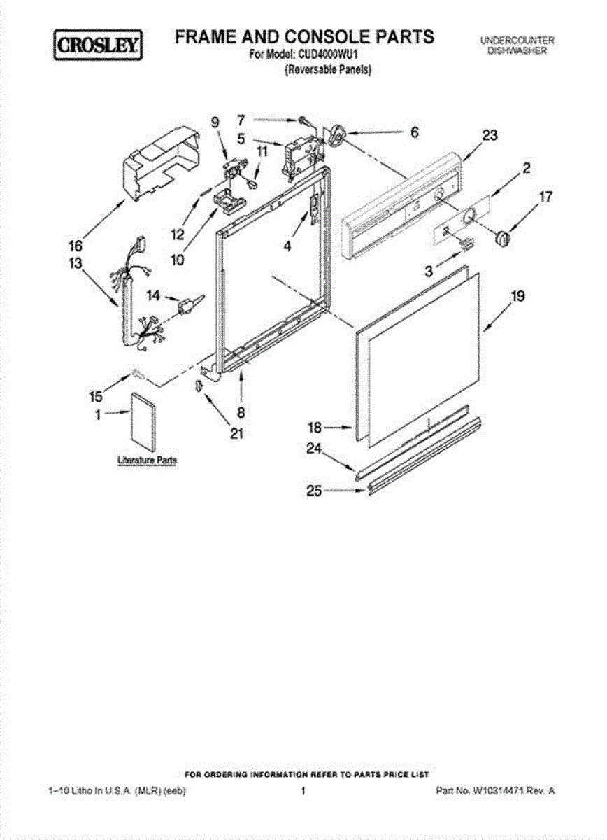 Reversible dishwasher door panel insert in black and white. Replaces dented, rusted, or worn door panels to refresh your dishwasher's appearance.