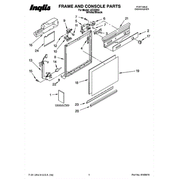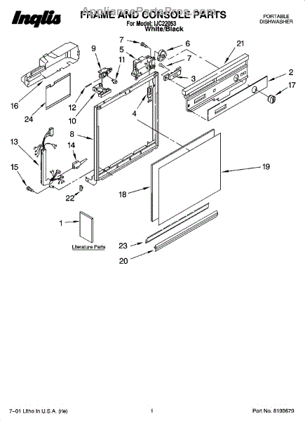 Dishwasher door panel insert. Reversible: white color on one side, black on the other.