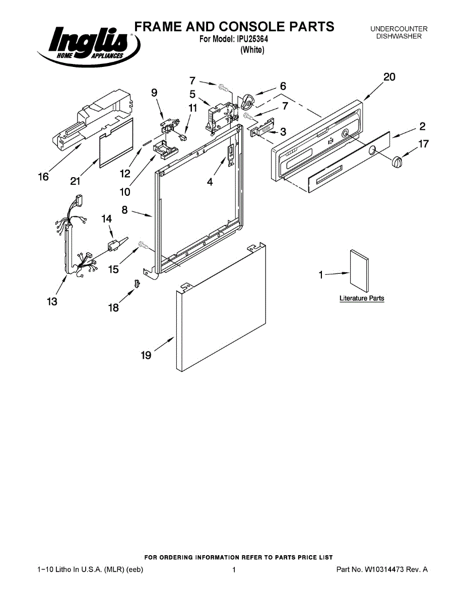 Structural door frame for dishwashers. Mounts to the tub and supports the door panel. Replace if cracked, rusted, warped, or damaged from corrosion.