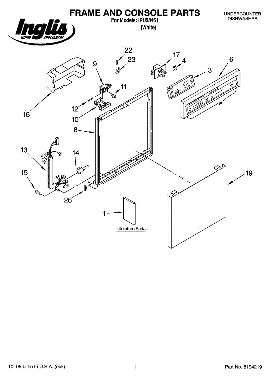 Parts for Whirlpool IPU58461: 01 - Frame And Console Parts