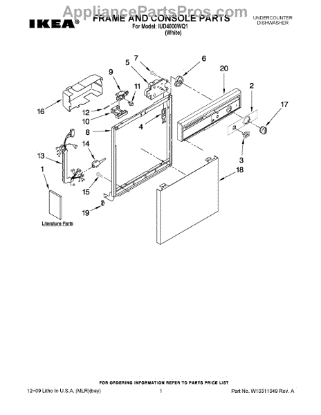 Parts for Whirlpool IUD4000WQ1: 01 - Frame And Console Parts
