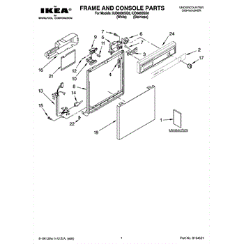 Structural door frame for dishwashers. Mounts to the tub and supports the door panel. Replace if cracked, rusted, warped, or damaged from corrosion.