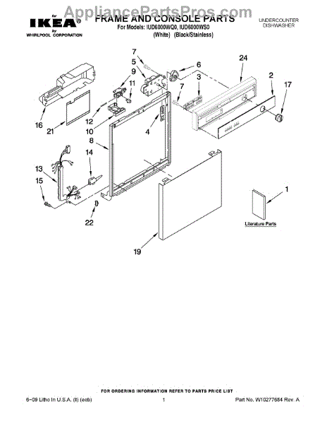 Parts for Whirlpool IUD6000WQ0: 01 - Frame And Console Parts