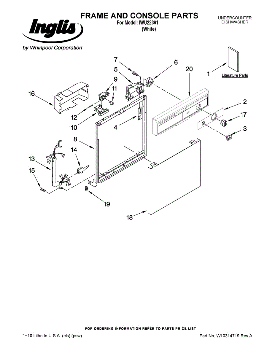 Structural door frame for dishwashers. Mounts to the tub and supports the door panel. Replace if cracked, rusted, warped, or damaged from corrosion.