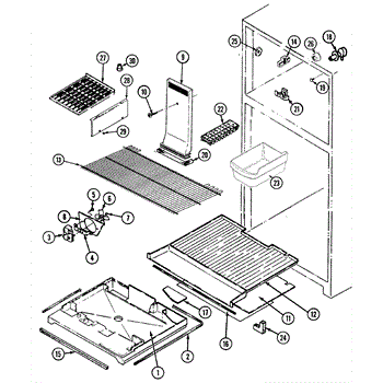 This refrigerator ice bucket stores ice made by the icemaker and positions it for dispensing. Replacing a cracked or warped bin restores smooth ice flow and helps prevent jams, spills, and mess inside the freezer.