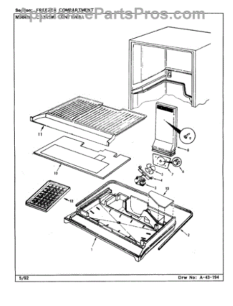 Parts for Crosley CNT15W3 / CC13A: 01 - Freezer Compartment Parts