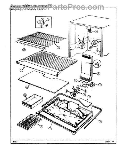 Parts for Crosley CT17X7A / DC38A: 01 - Freezer Compartment Parts