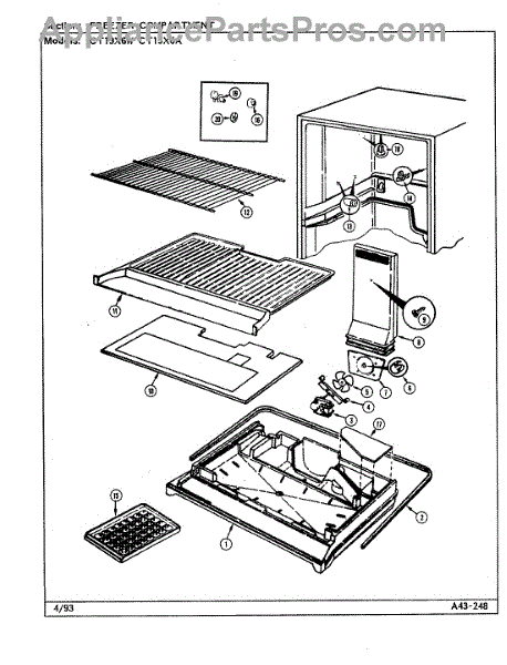Parts for Crosley CT19X6W / DE66A: 01 - Freezer Compartment Parts