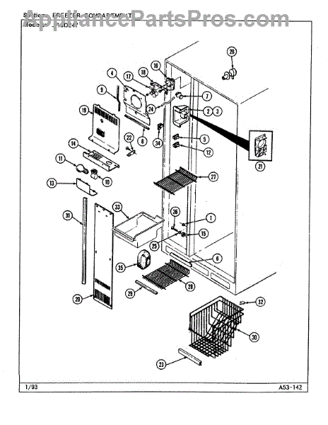 This refrigerator ice bucket stores ice made by the icemaker and positions it for dispensing. Replacing a cracked or warped bin restores smooth ice flow and helps prevent jams, spills, and mess inside the freezer.