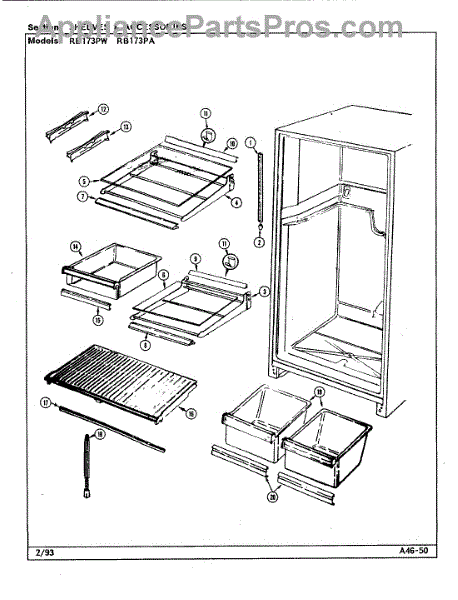 This factory screw secures appliance components to their mounting points. Replace missing, worn, or stripped hardware to restore a tight fit, proper alignment, and quieter operation across the affected assembly.