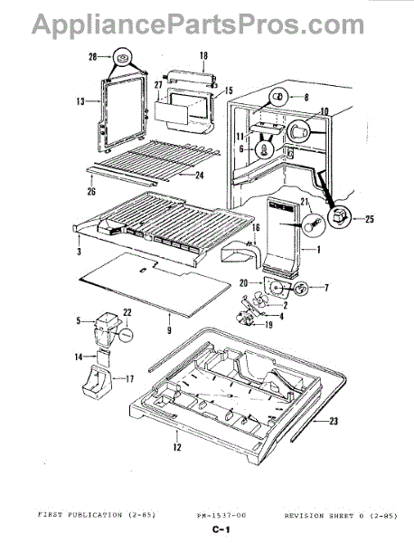 This factory screw secures appliance components to their mounting points. Replace missing, worn, or stripped hardware to restore a tight fit, proper alignment, and quieter operation across the affected assembly.