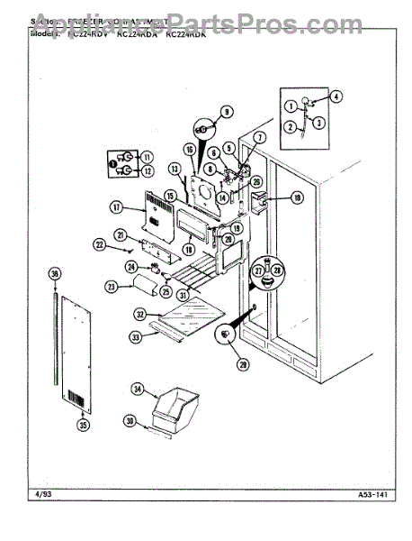 Parts for Magic Chef RC224RDV / DS36B: 01 - Freezer Compartment Parts