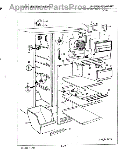 This factory screw secures appliance components to their mounting points. Replace missing, worn, or stripped hardware to restore a tight fit, proper alignment, and quieter operation across the affected assembly.