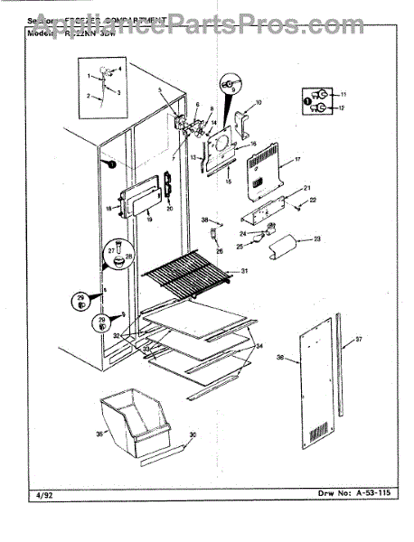This factory screw secures appliance components to their mounting points. Replace missing, worn, or stripped hardware to restore a tight fit, proper alignment, and quieter operation across the affected assembly.