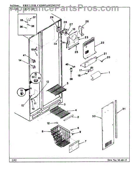 This factory screw secures appliance components to their mounting points. Replace missing, worn, or stripped hardware to restore a tight fit, proper alignment, and quieter operation across the affected assembly.