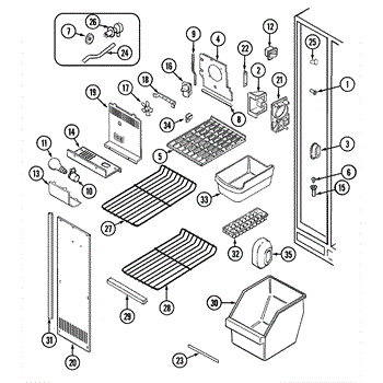 This refrigerator ice bucket stores ice made by the icemaker and positions it for dispensing. Replacing a cracked or warped bin restores smooth ice flow and helps prevent jams, spills, and mess inside the freezer.
