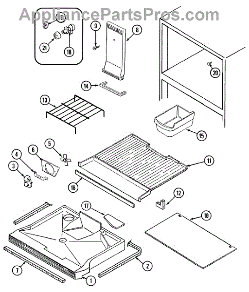 This refrigerator ice bucket stores ice made by the icemaker and positions it for dispensing. Replacing a cracked or warped bin restores smooth ice flow and helps prevent jams, spills, and mess inside the freezer.