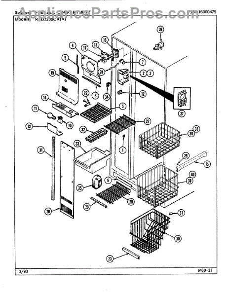 This refrigerator ice bucket stores ice made by the icemaker and positions it for dispensing. Replacing a cracked or warped bin restores smooth ice flow and helps prevent jams, spills, and mess inside the freezer.