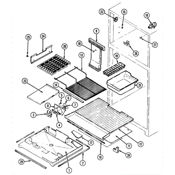 This refrigerator ice bucket stores ice made by the icemaker and positions it for dispensing. Replacing a cracked or warped bin restores smooth ice flow and helps prevent jams, spills, and mess inside the freezer.