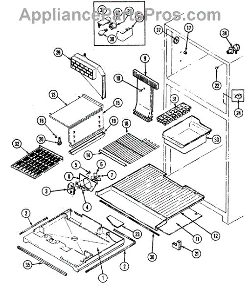 Parts for Maytag RTD19E0CAB / DH66A: 01 - Freezer Compartment Parts
