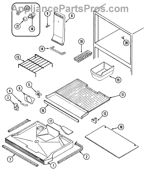 This refrigerator ice bucket stores ice made by the icemaker and positions it for dispensing. Replacing a cracked or warped bin restores smooth ice flow and helps prevent jams, spills, and mess inside the freezer.