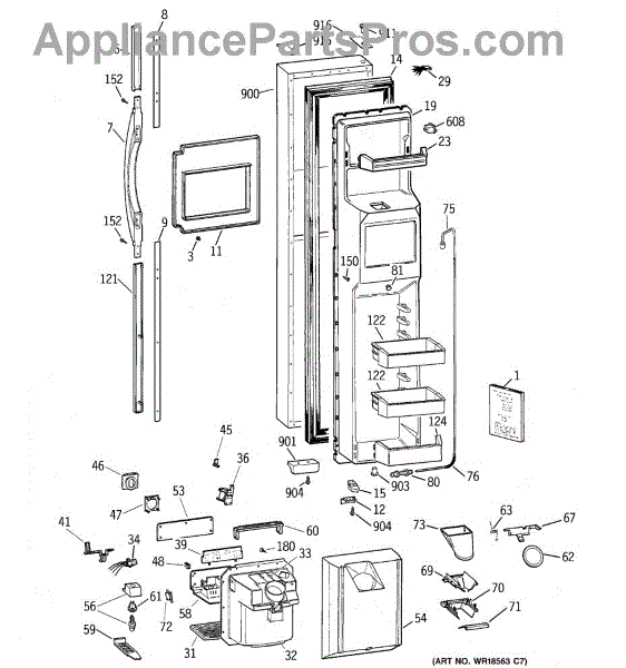 Parts for Ge CSK30DRBEAA: 01 - Freezer Door Parts